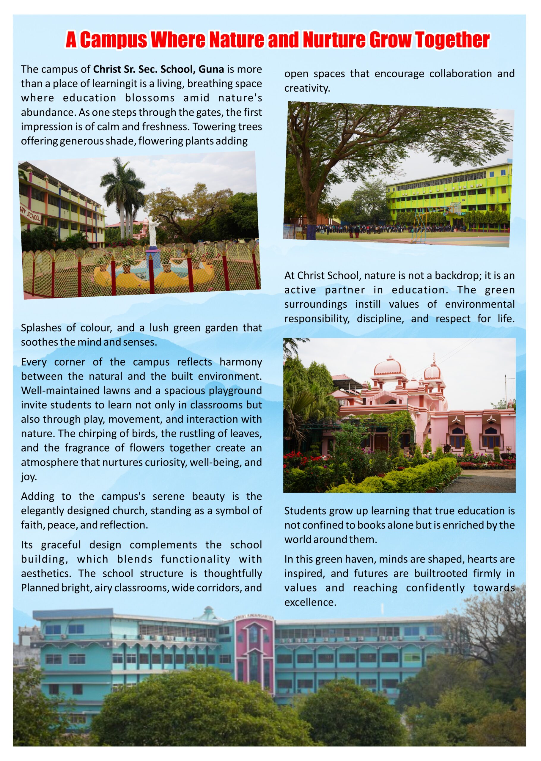 At Christ School Guna, we believe that environmental conservation is not just a responsibility, but a necessity. Our students have been at the forefront of this initiative, participating in various activities such as tree plantation drives, waste management programs, and eco-club meetings. These efforts have not only helped reduce our carbon footprint but also instilled a sense of ownership and stewardship among our students.