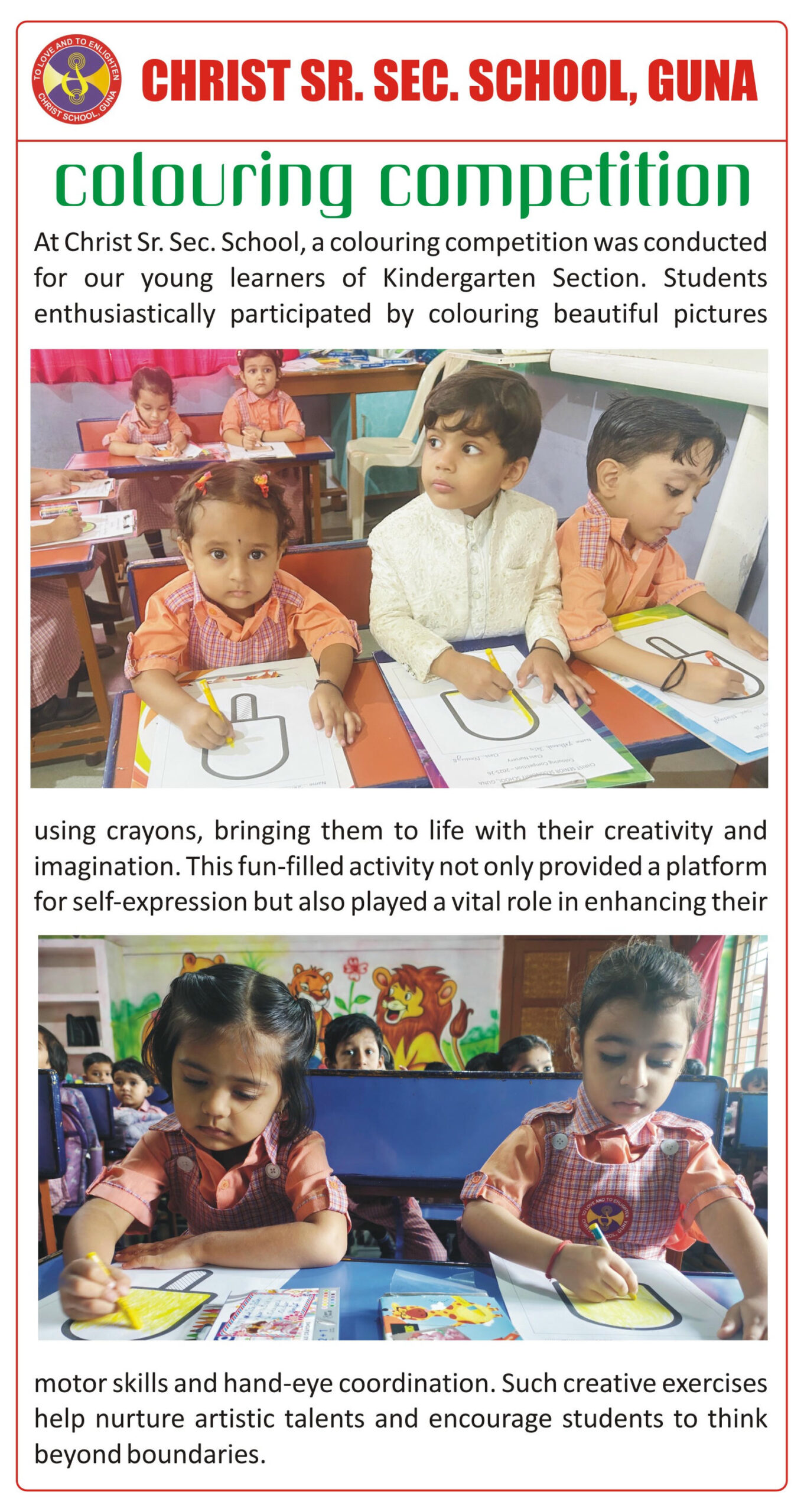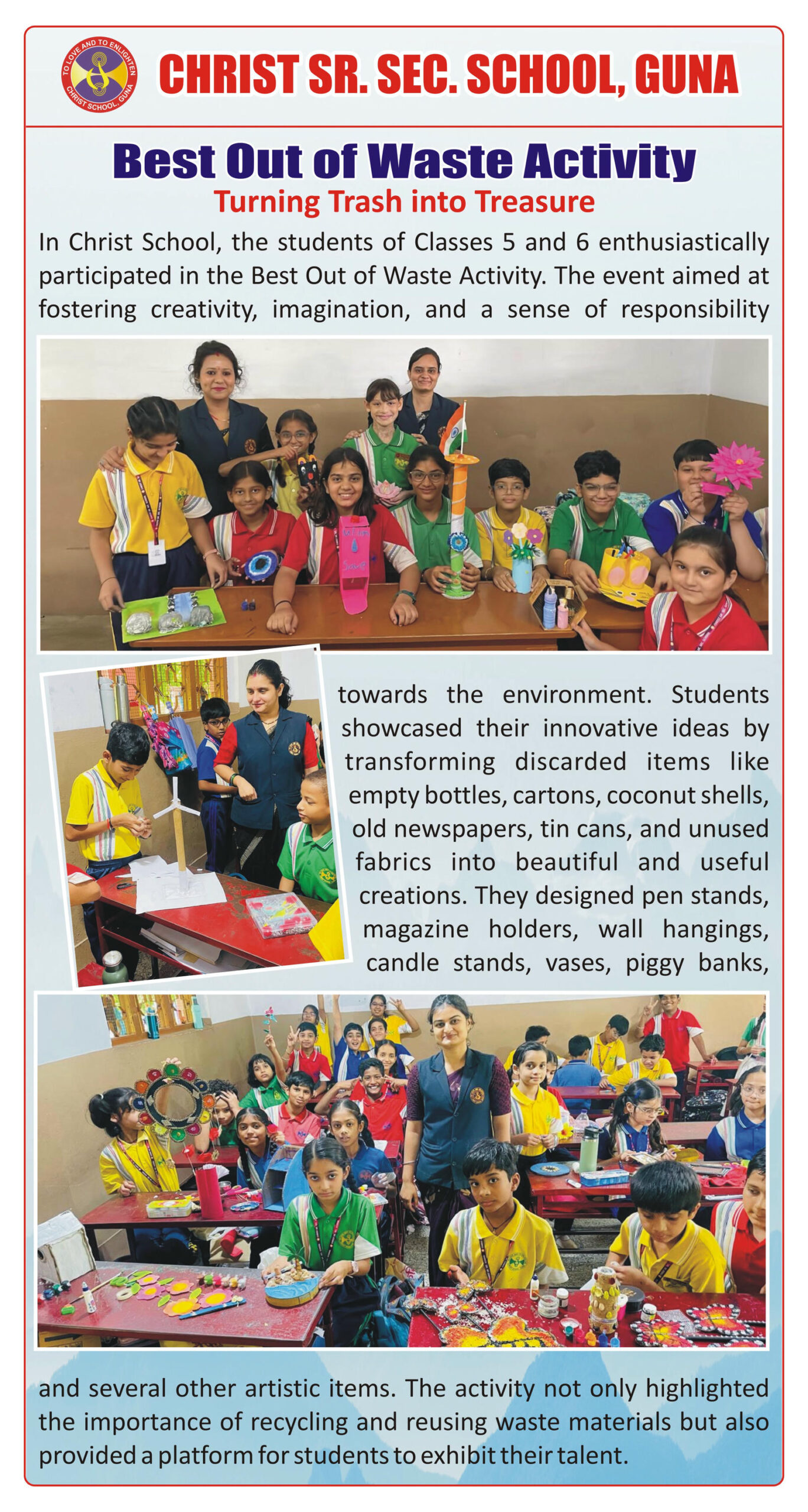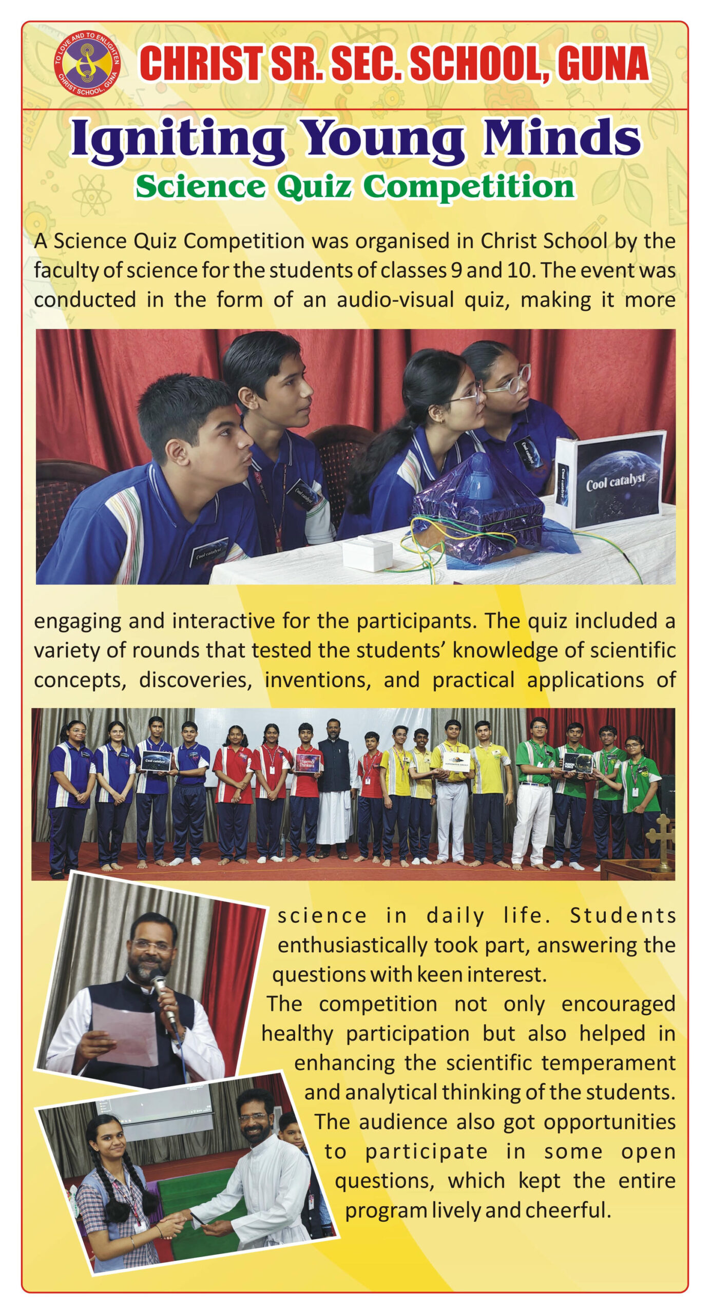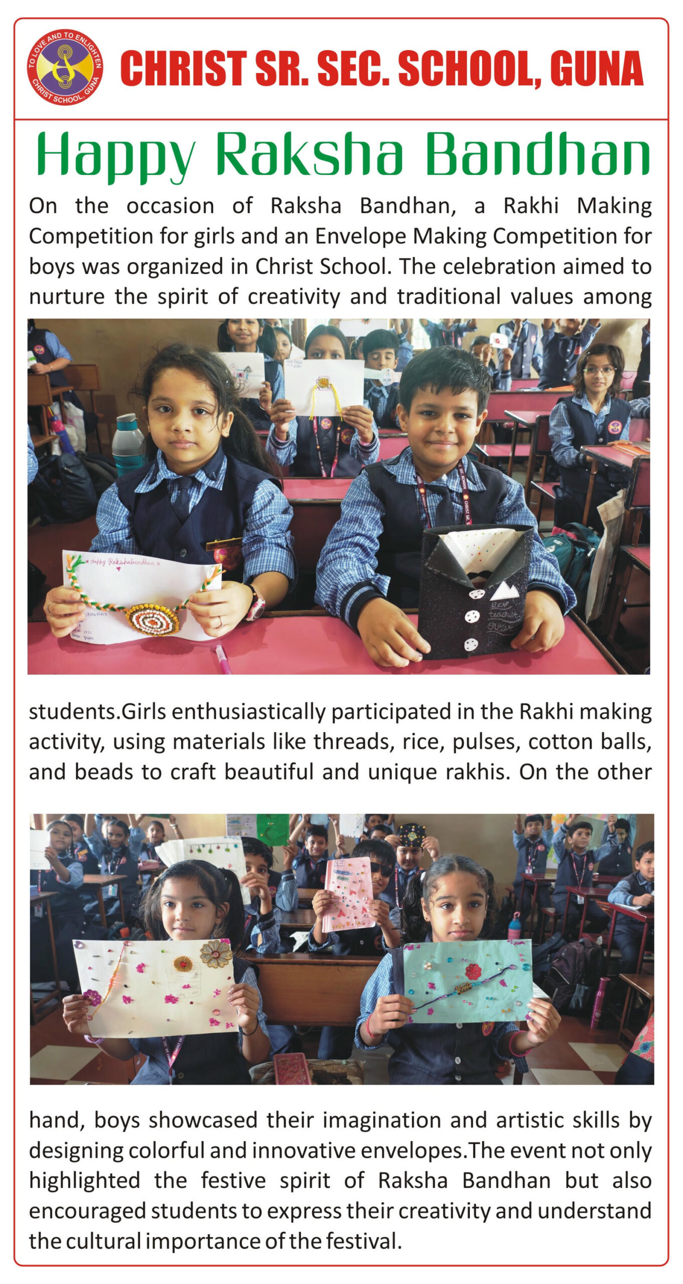 “Christ Times is the official students’ magazine of Christ School. It is a vibrant platform that showcases the creativity, thoughts, and talents of our students through articles, stories, poems, drawings, and illustrations.”