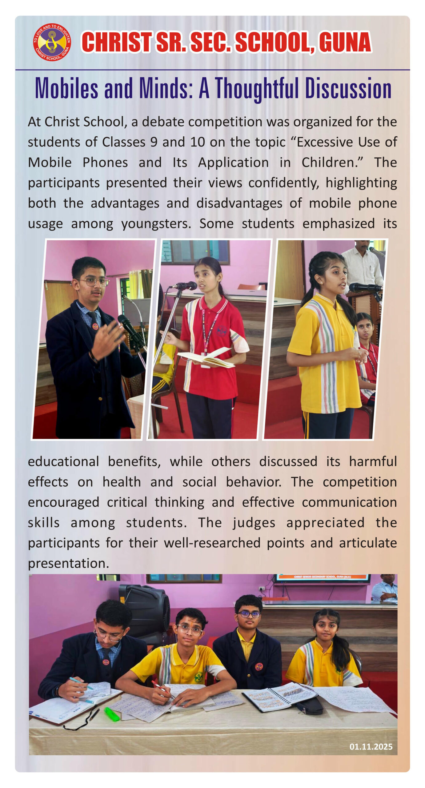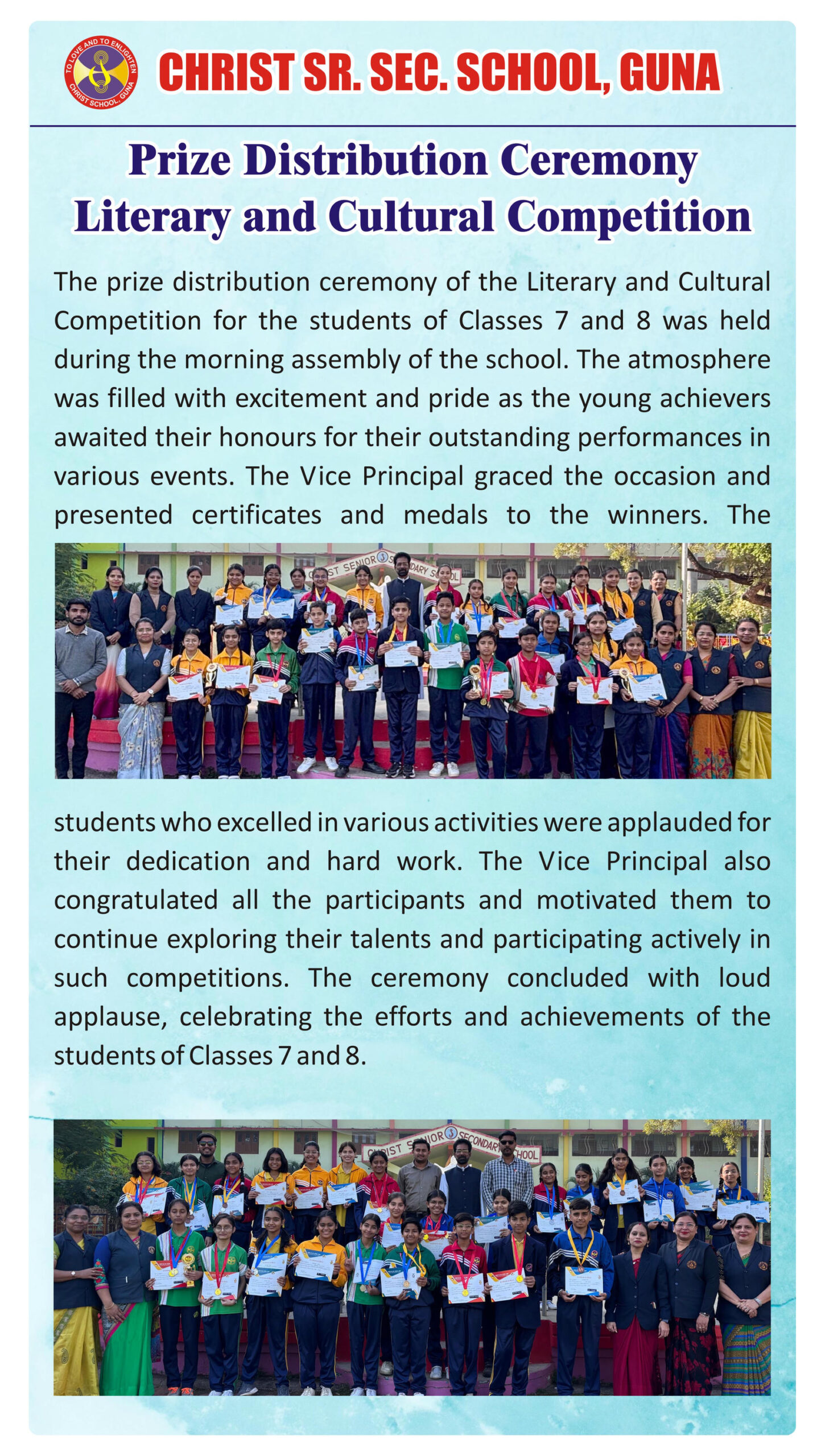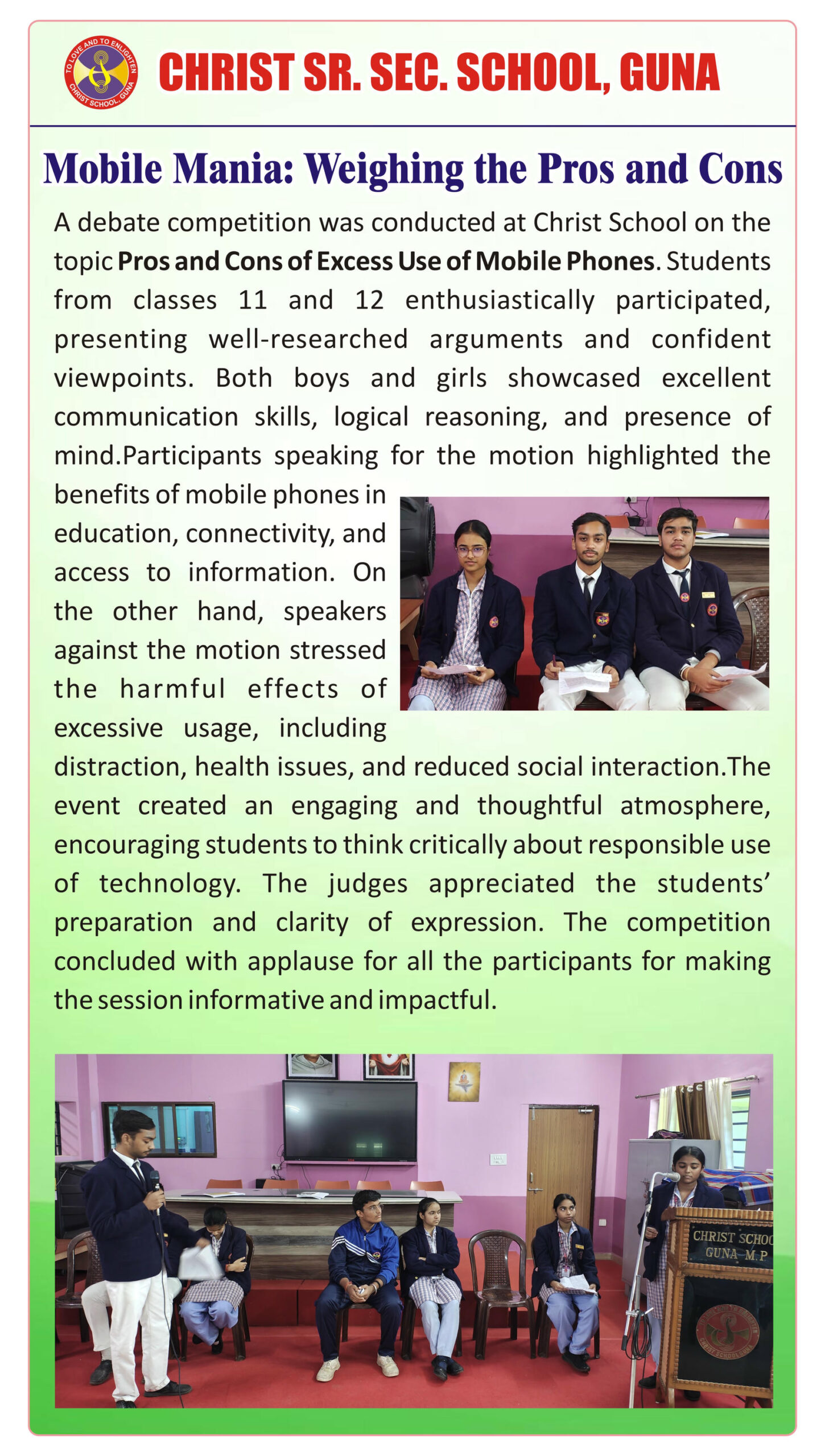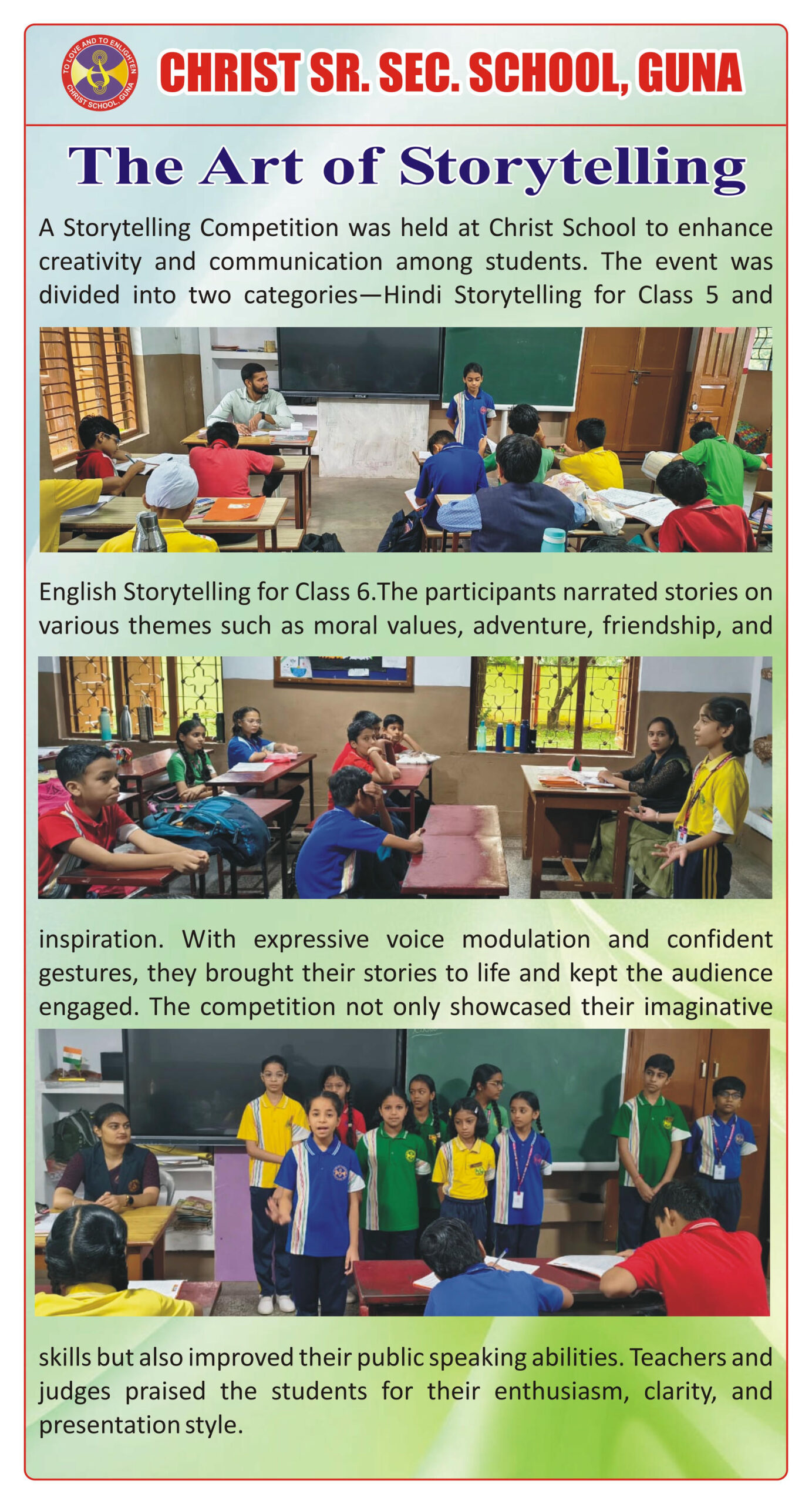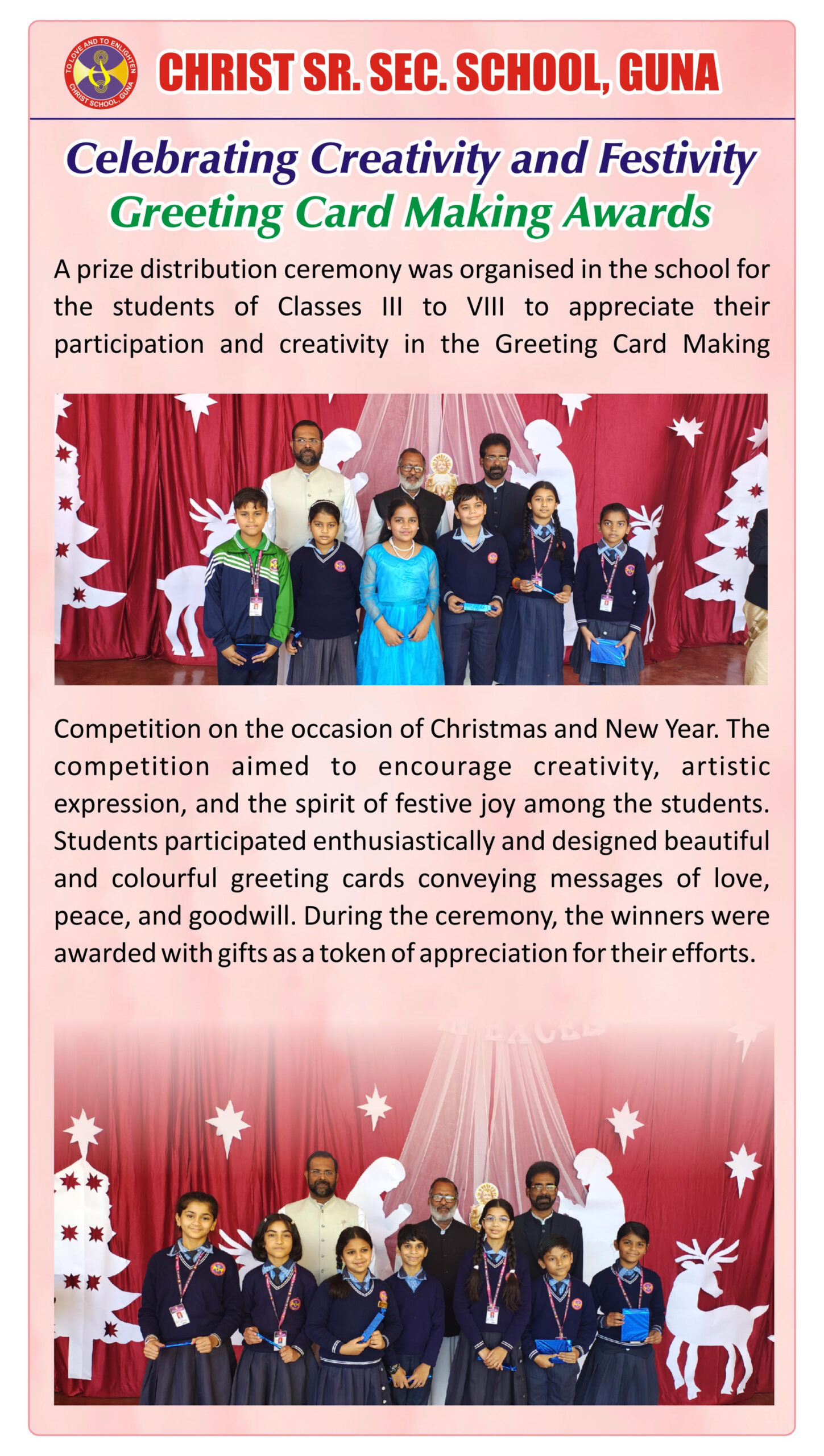 “Christ Times is the official students’ magazine of Christ School. It is a vibrant platform that showcases the creativity, thoughts, and talents of our students through articles, stories, poems, drawings, and illustrations.”