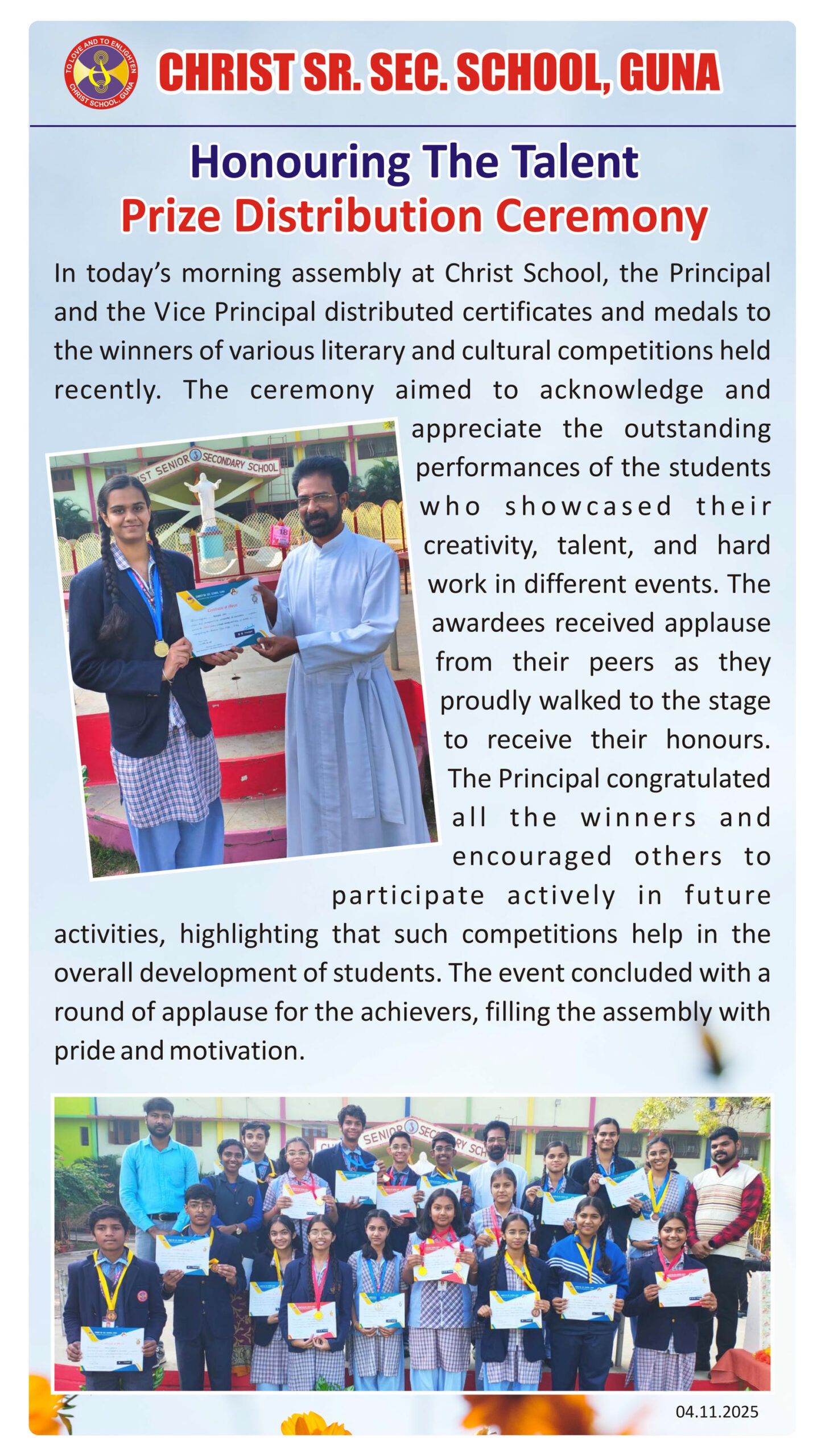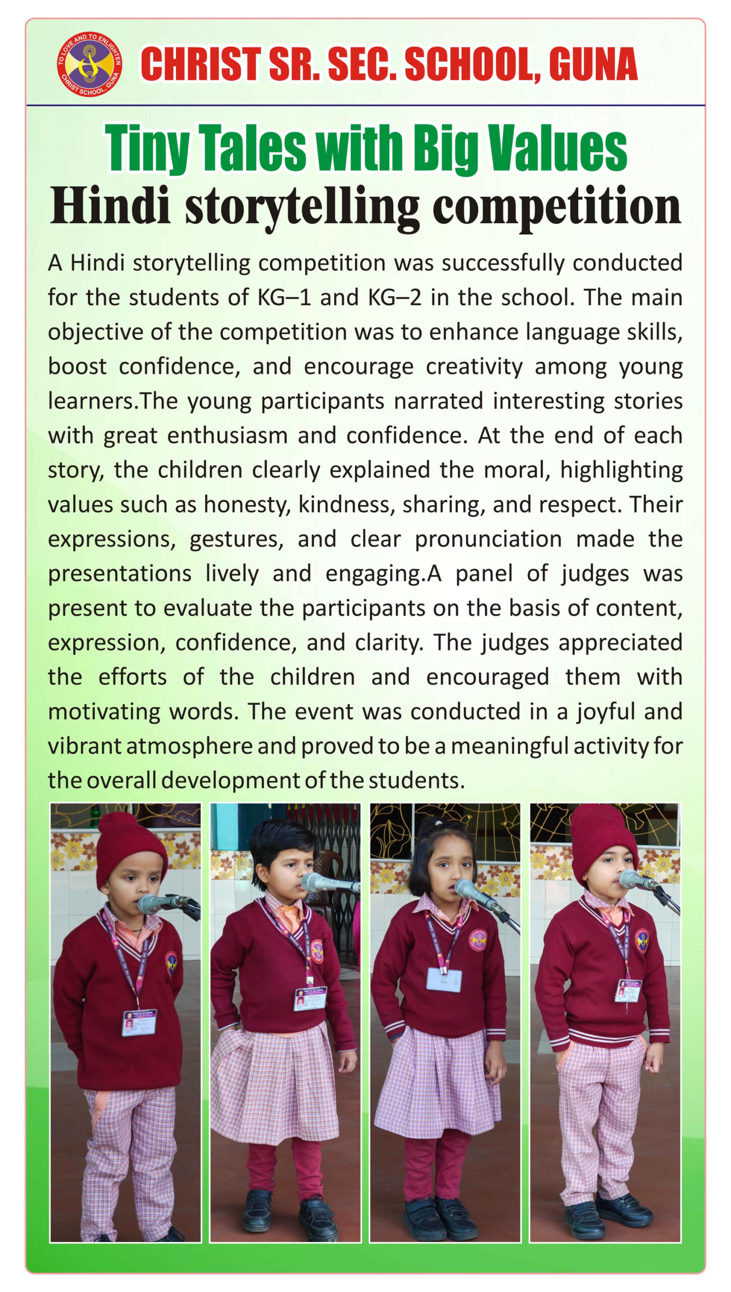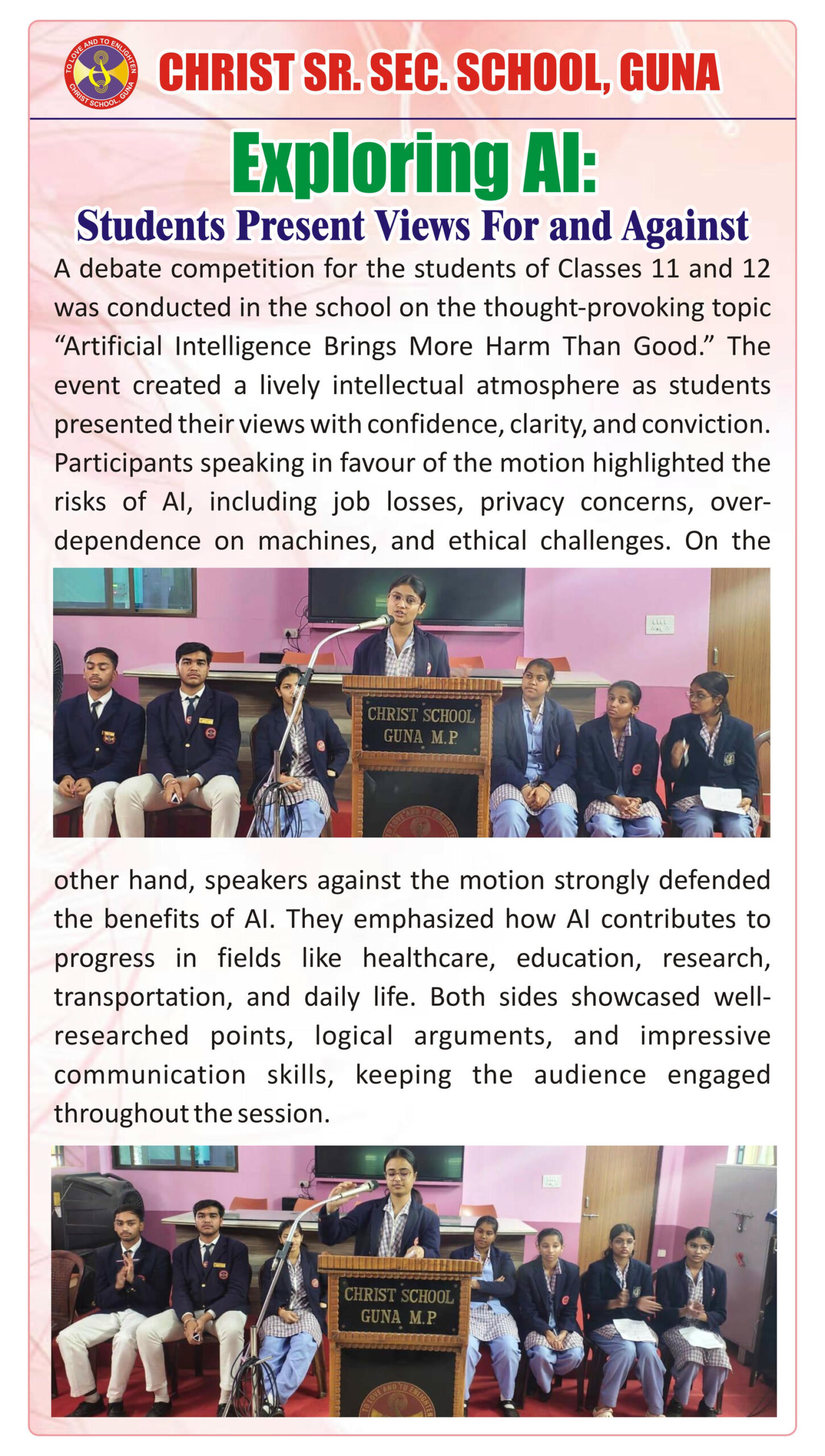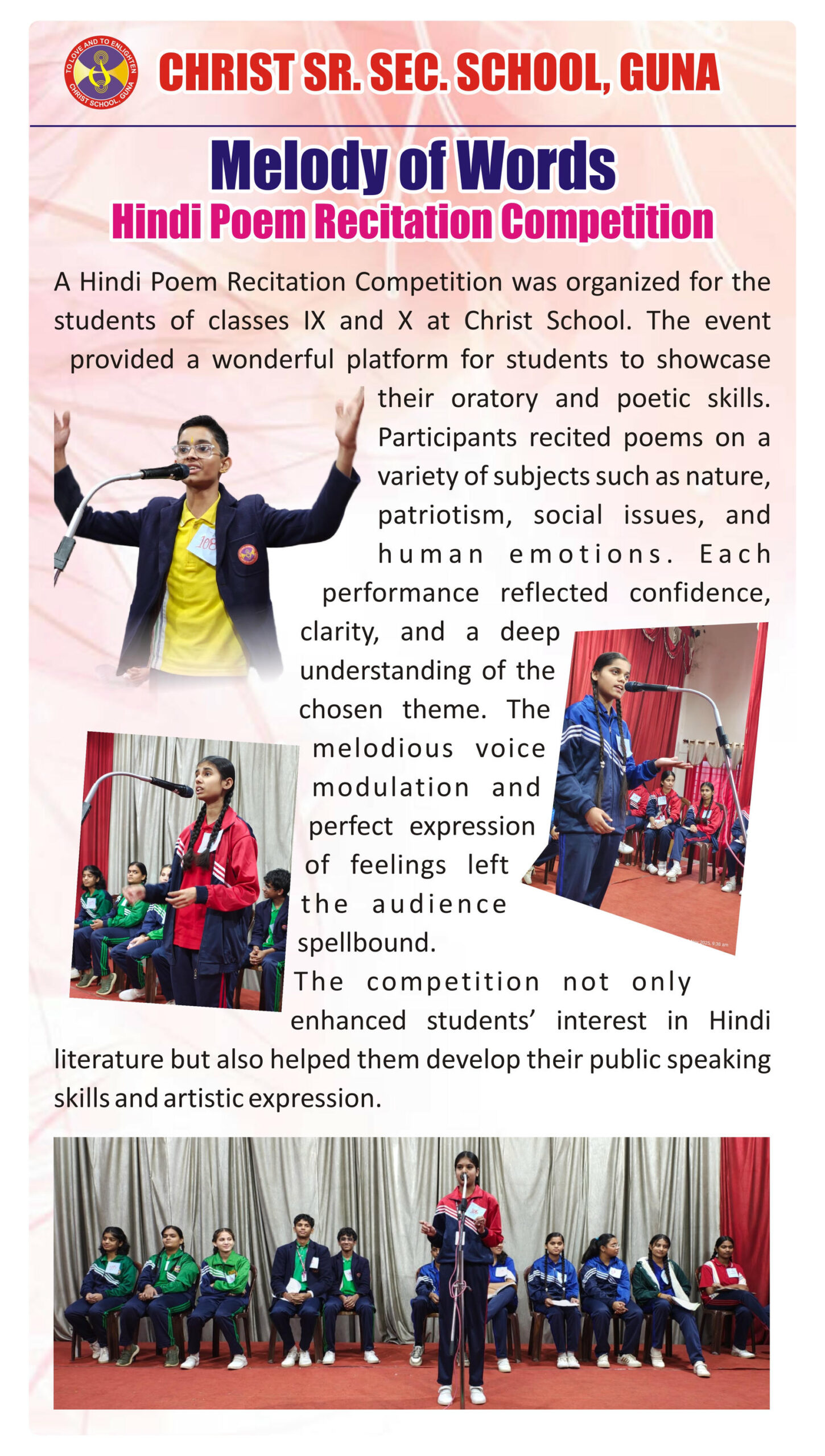 “Christ Times is the official students’ magazine of Christ School. It is a vibrant platform that showcases the creativity, thoughts, and talents of our students through articles, stories, poems, drawings, and illustrations.”