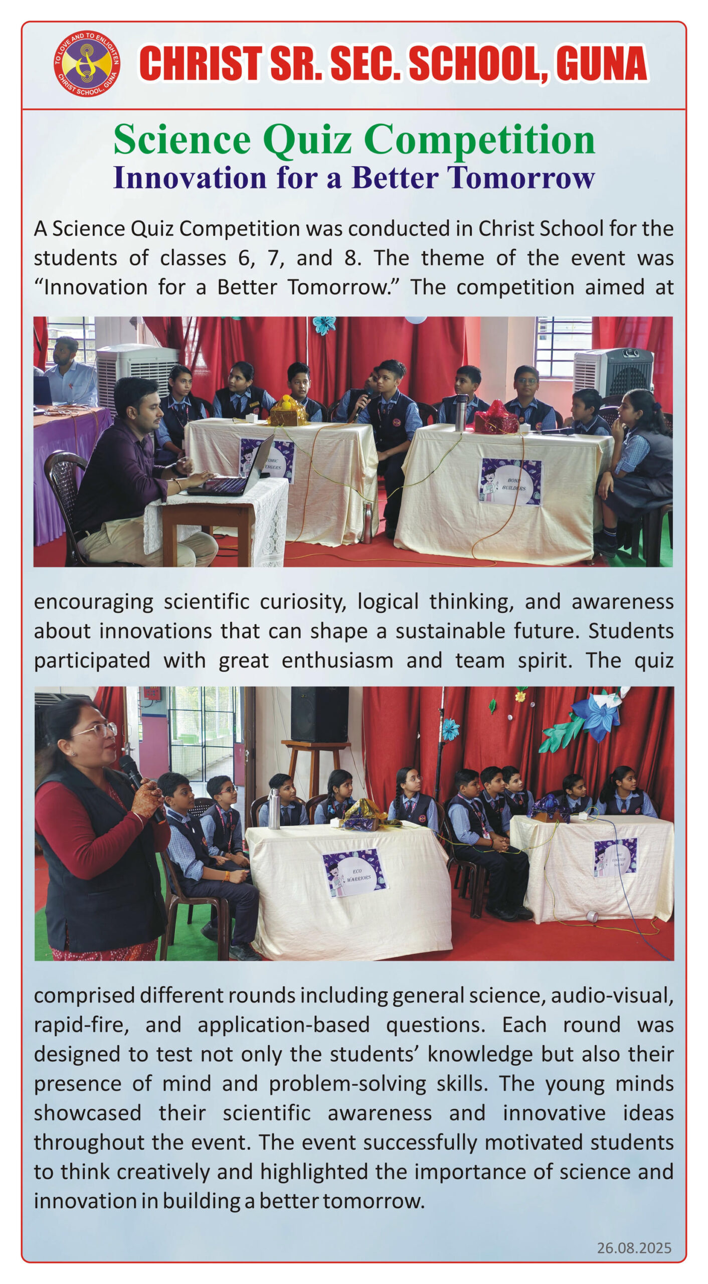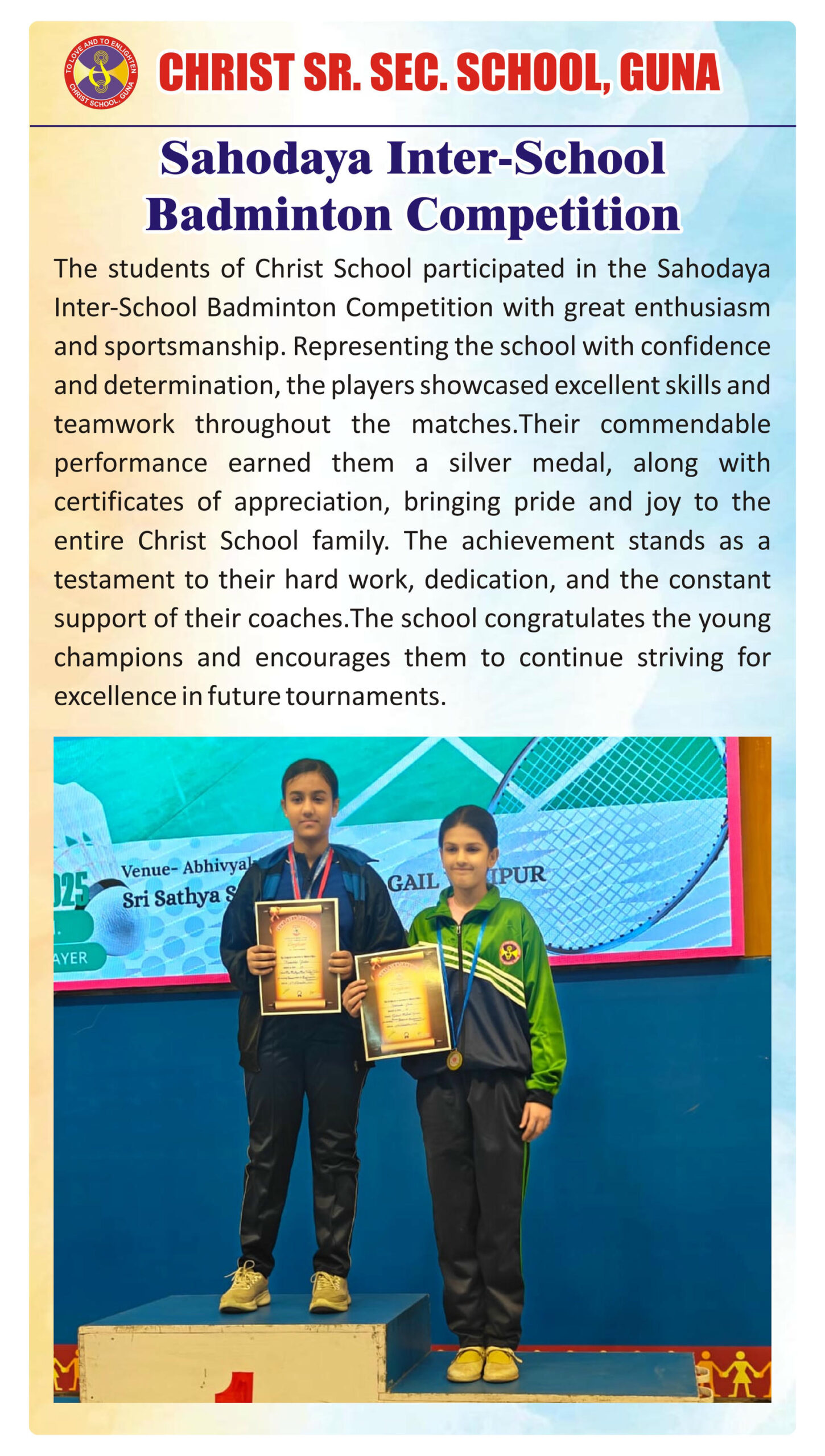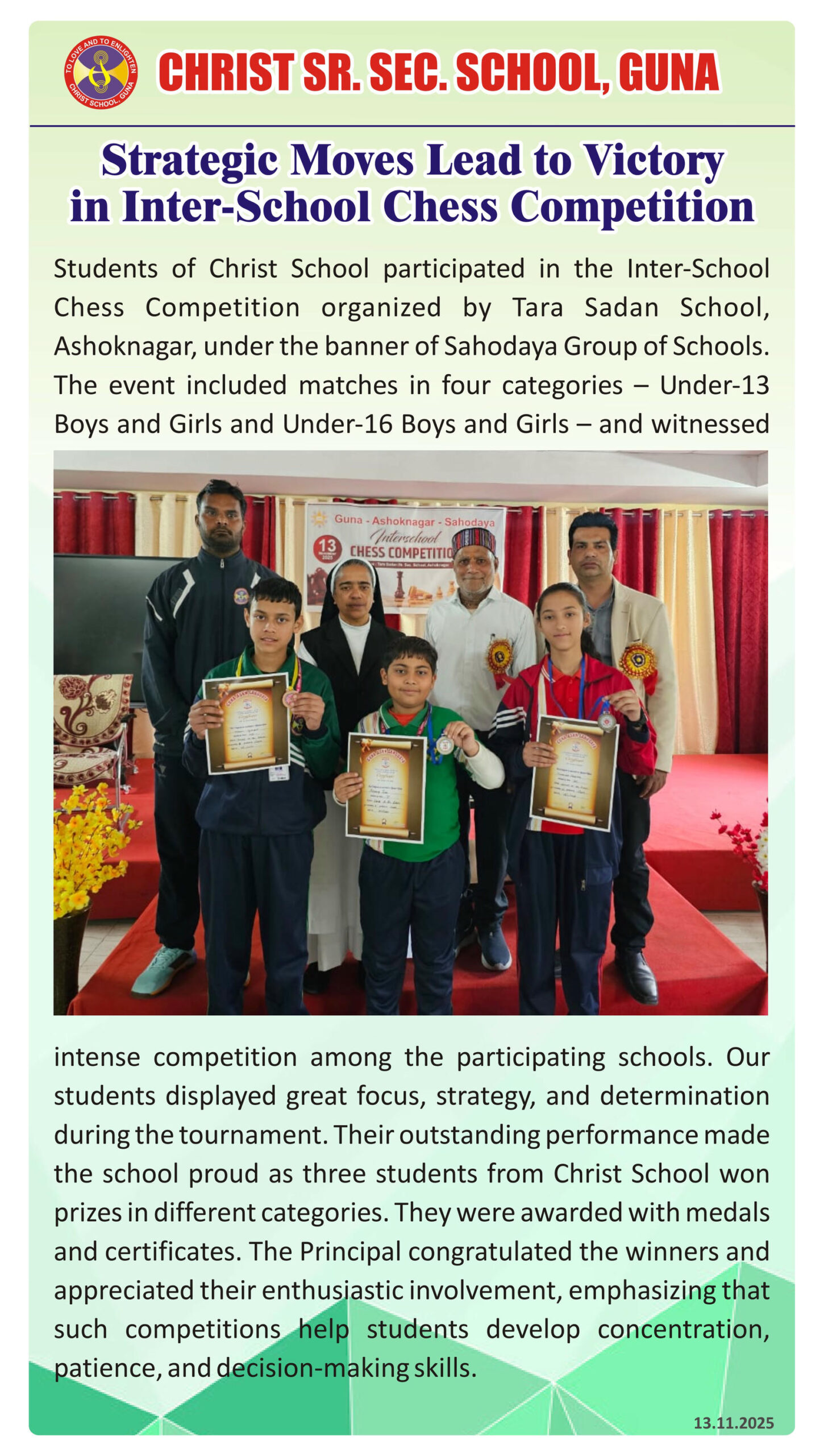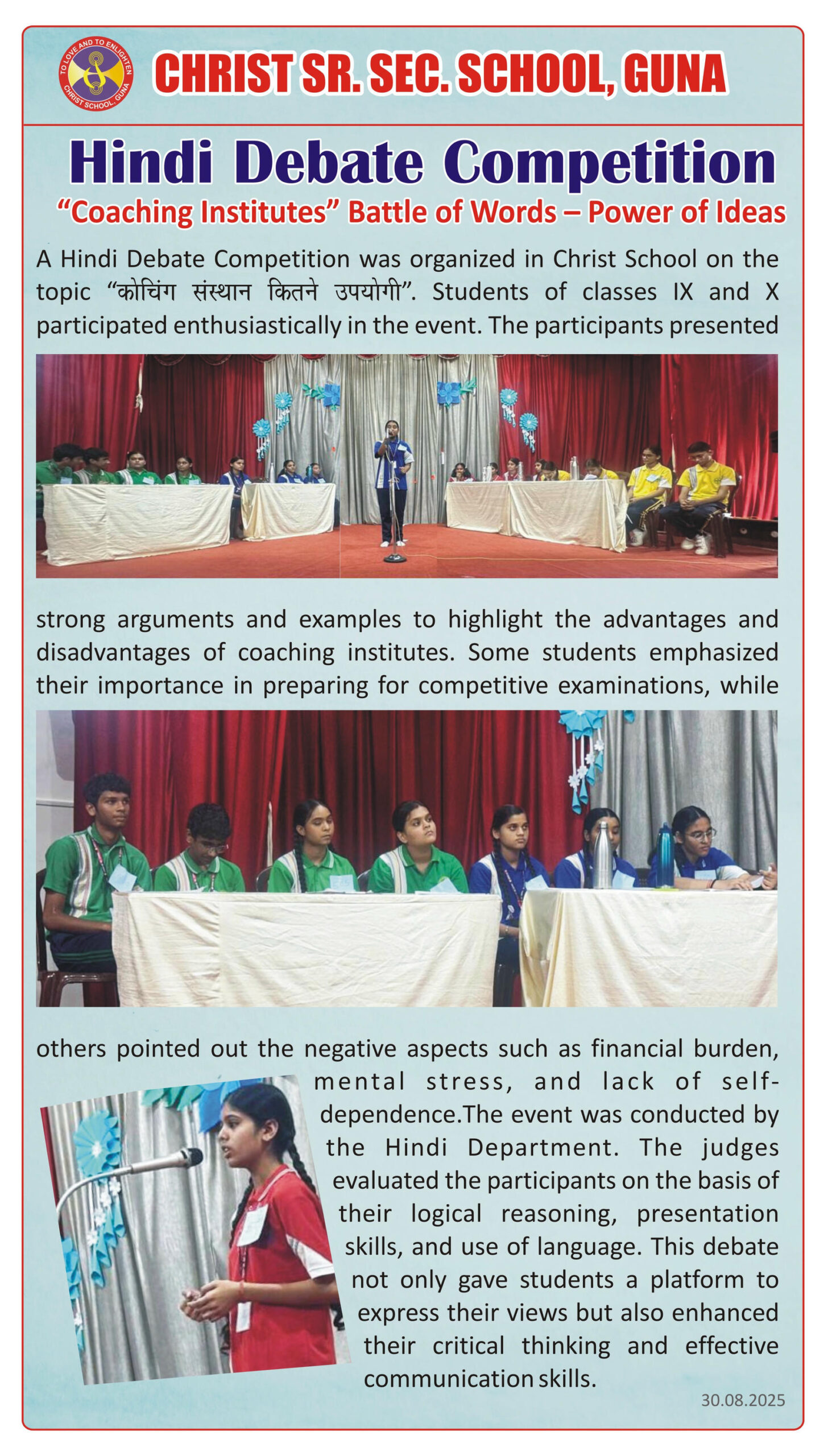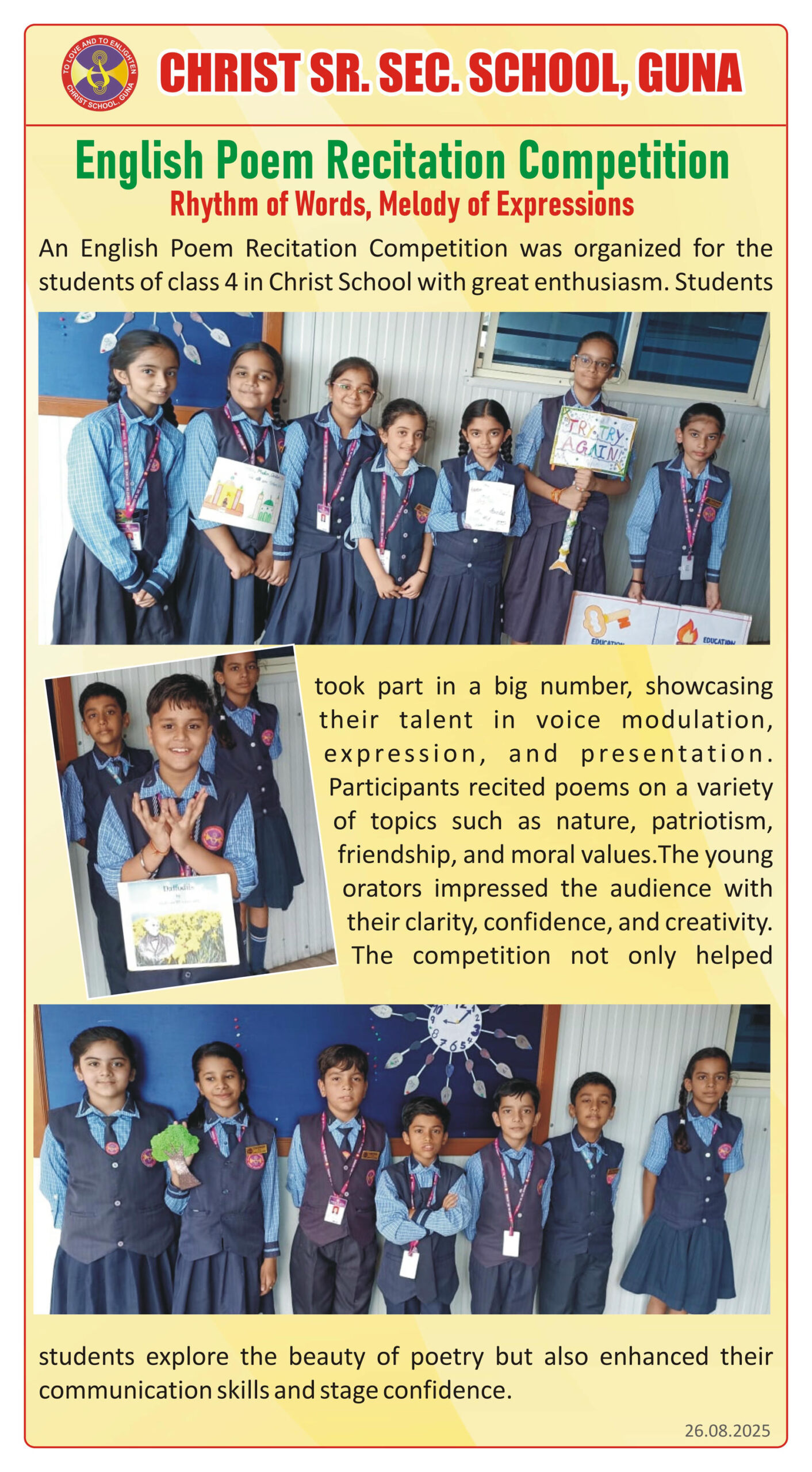 “Christ Times is the official students’ magazine of Christ School. It is a vibrant platform that showcases the creativity, thoughts, and talents of our students through articles, stories, poems, drawings, and illustrations.”
